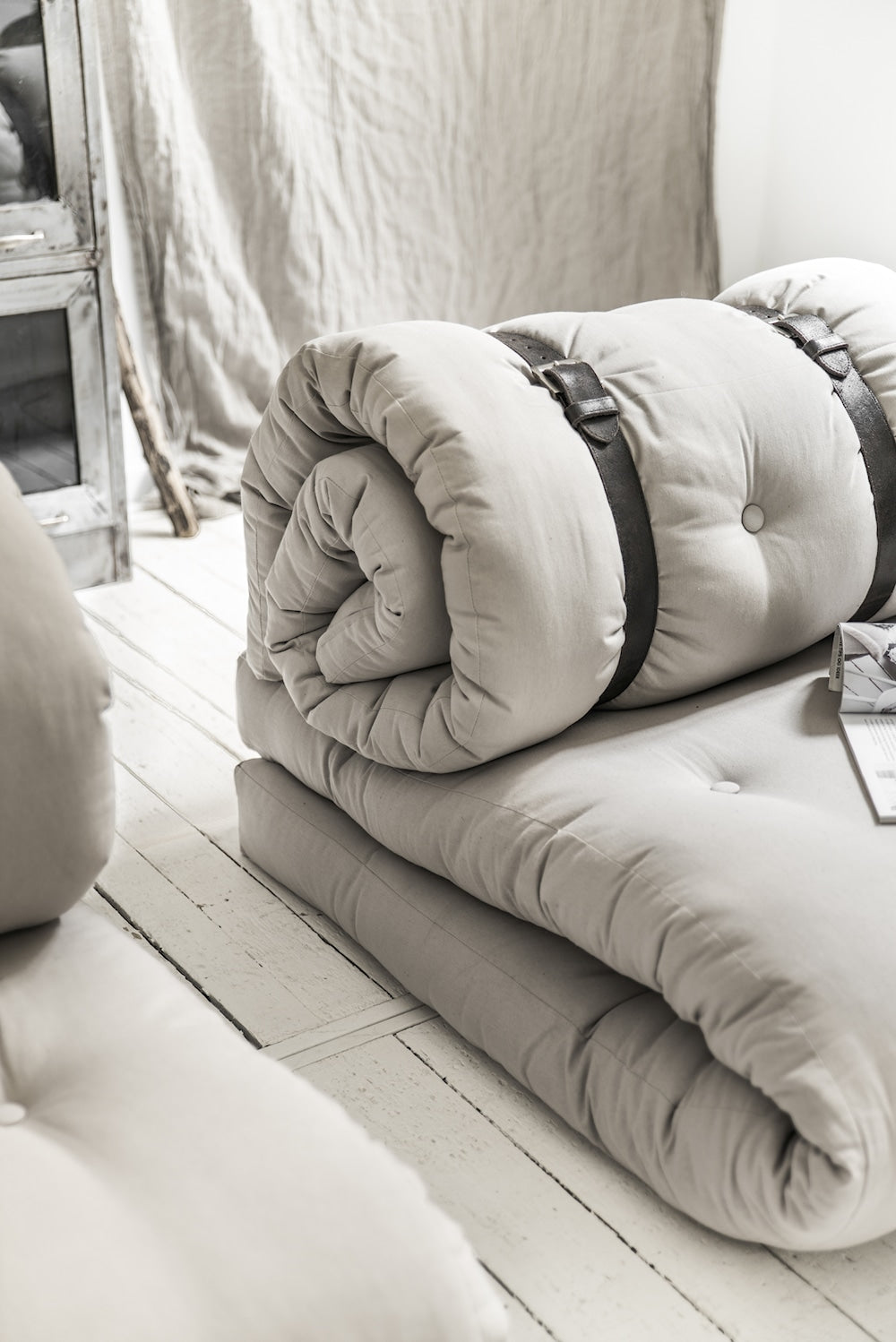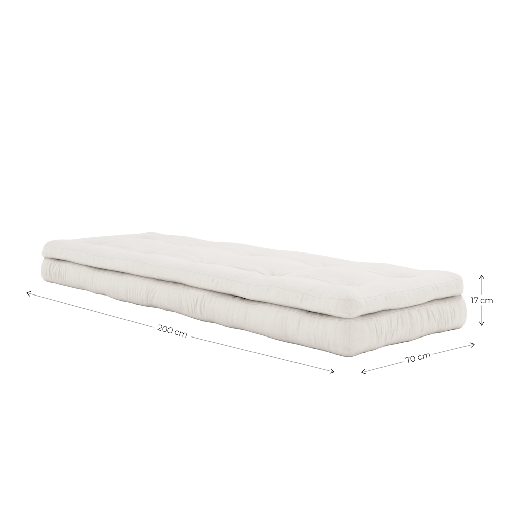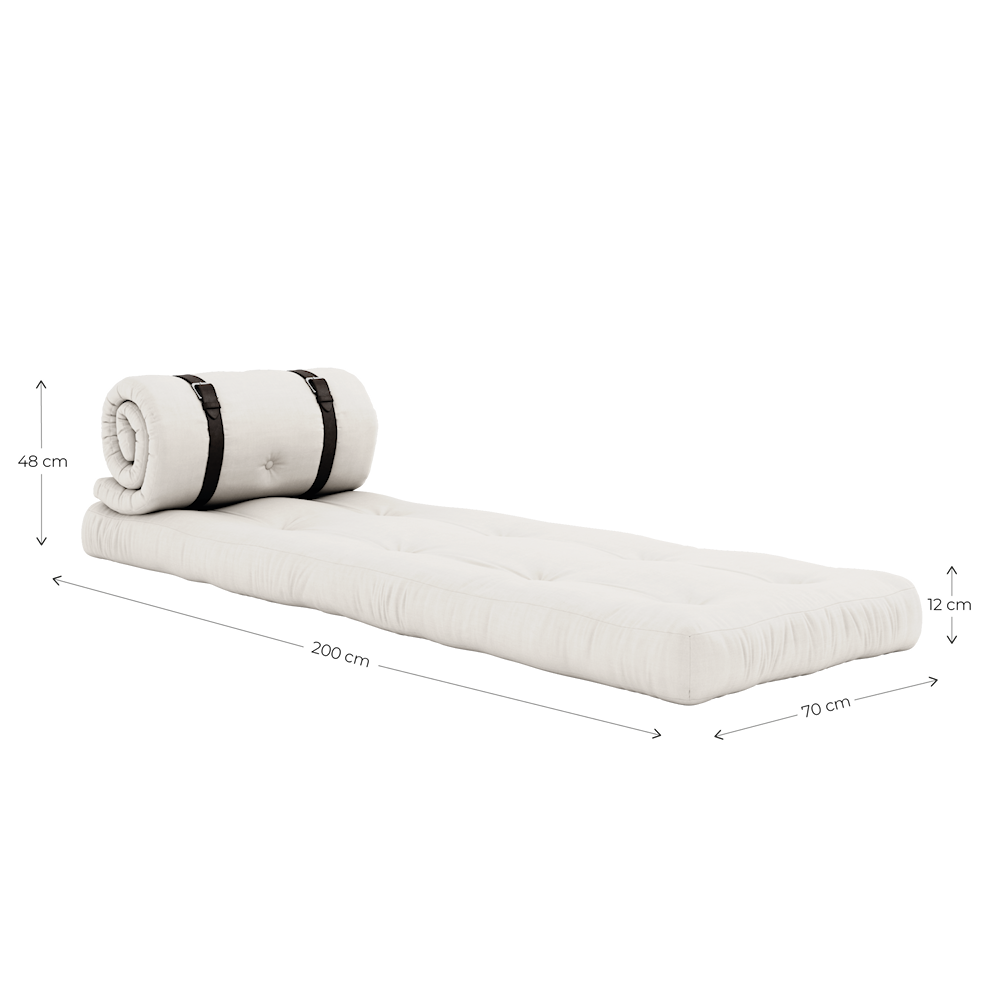 Buckle-Up trīs vienkāršos soļos viegli pārtop no ērtas sēdvietas par funkcionālu viesu izmitināšanu. Vienkārši atlociet sēdekļa spilvenu, attaisiet sarullēto atzveltni un pēc tam salieciet abus futonus vienu virs otra, lai izveidotu greznu, biezu gultu, kas nodrošinās polsterētu komfortu visu nakti. Mūsu futoni ir platāki un biezāki nekā tradicionālie futoni. Buckle-Up ir ļoti funkcionāls, stilīgs un lielisks veids, kā maksimāli izmantot savu dzīvojamo telpu.